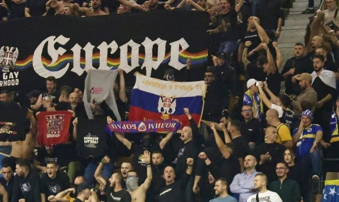 Uz veliku podršku koju pružaju našim košarkašima, BH Fanaticosi su istakli i nekoliko zanimljivih parola, a uz to i rekvizite i zastave koje su ranije oduzeli od navijača Srbije.